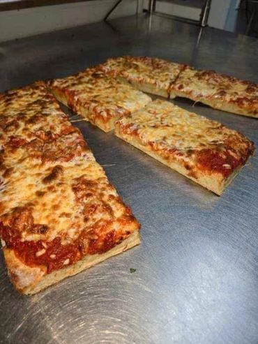 Our menu features a wide variety of Pizza by the pie or by the slice, including a gluten-free option. We have wings, salads and some dessert options too. We also offer a selection of local beers along with national brands.